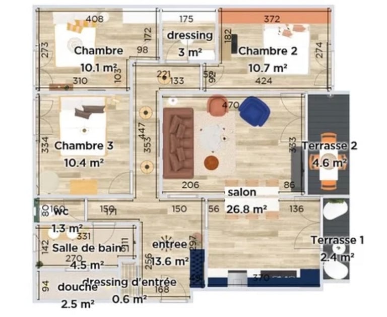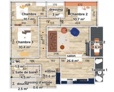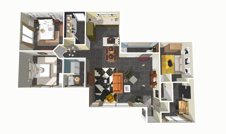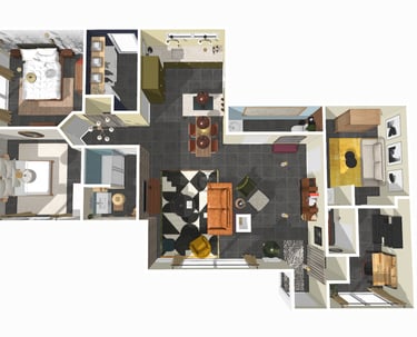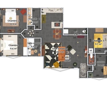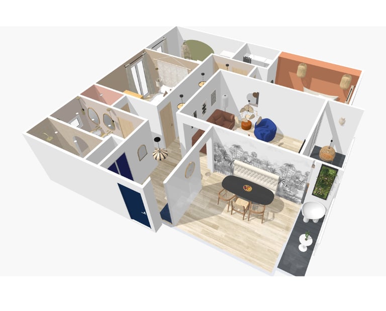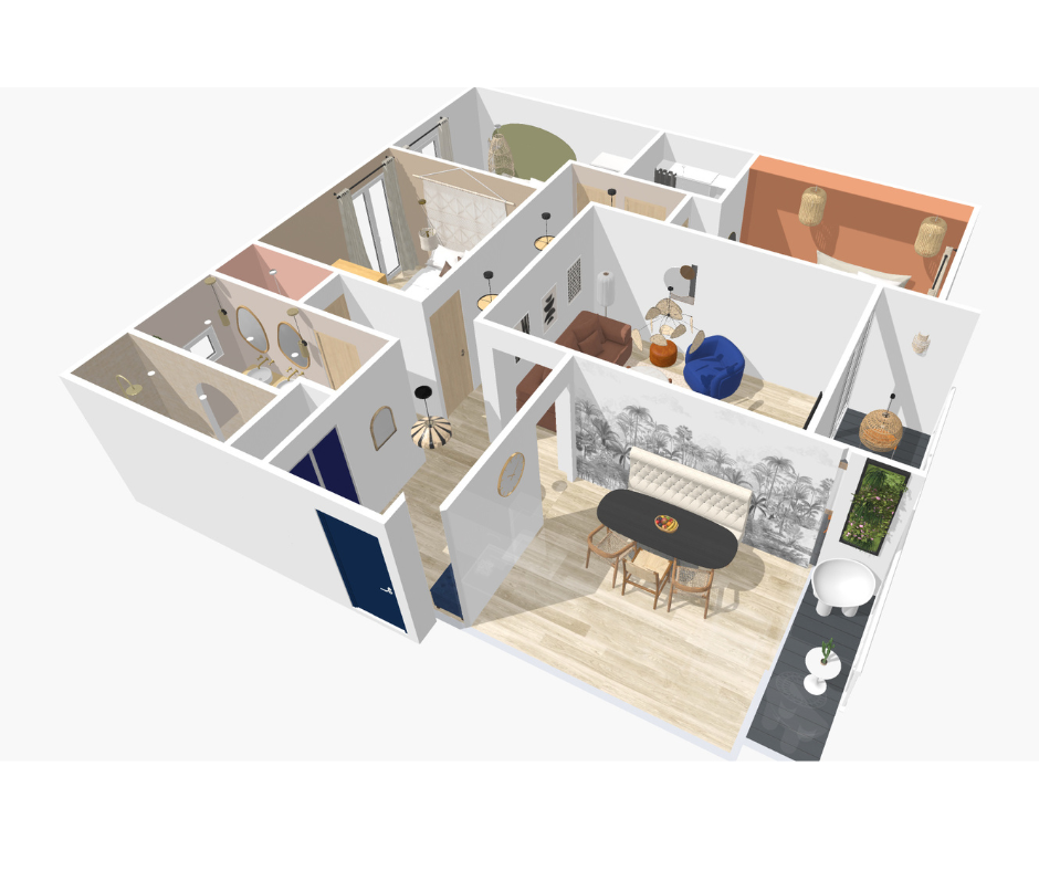 Un plan 3D montre un bien immobilier en trois dimensions pour mieux visualiser l'espace.