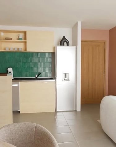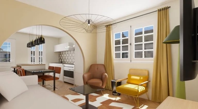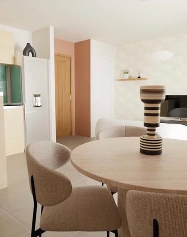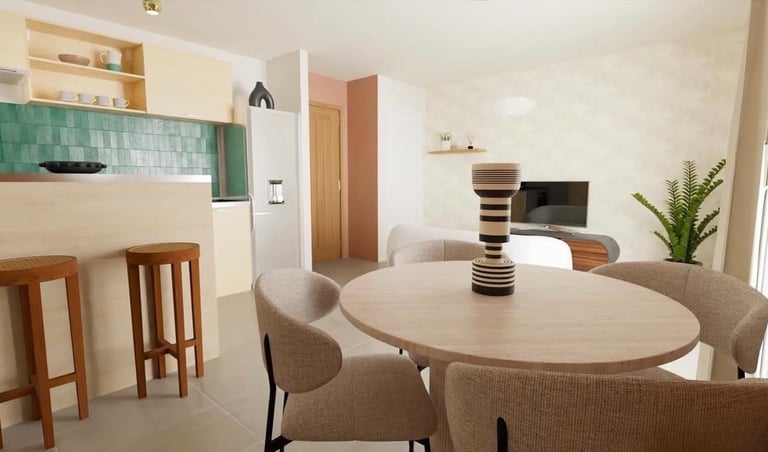 Cette décoration aux tons crème crée une atmosphère douce et élégante, apportant chaleur, lumière et sérénité à l’ensemble de l’appartement.