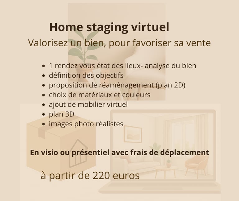 Diagnostic du logement, recommandations pour dépersonnaliser, optimiser l’espace, valoriser les atouts, neutraliser les couleurs, proposer des réparations rapides et une mise en scène adaptée.
