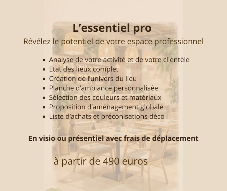 Session courte pour faire les bons choix (couleurs, revêtements, réagencement du mobilier) et apporter de nouvelles idées déco adaptées à l’existant.